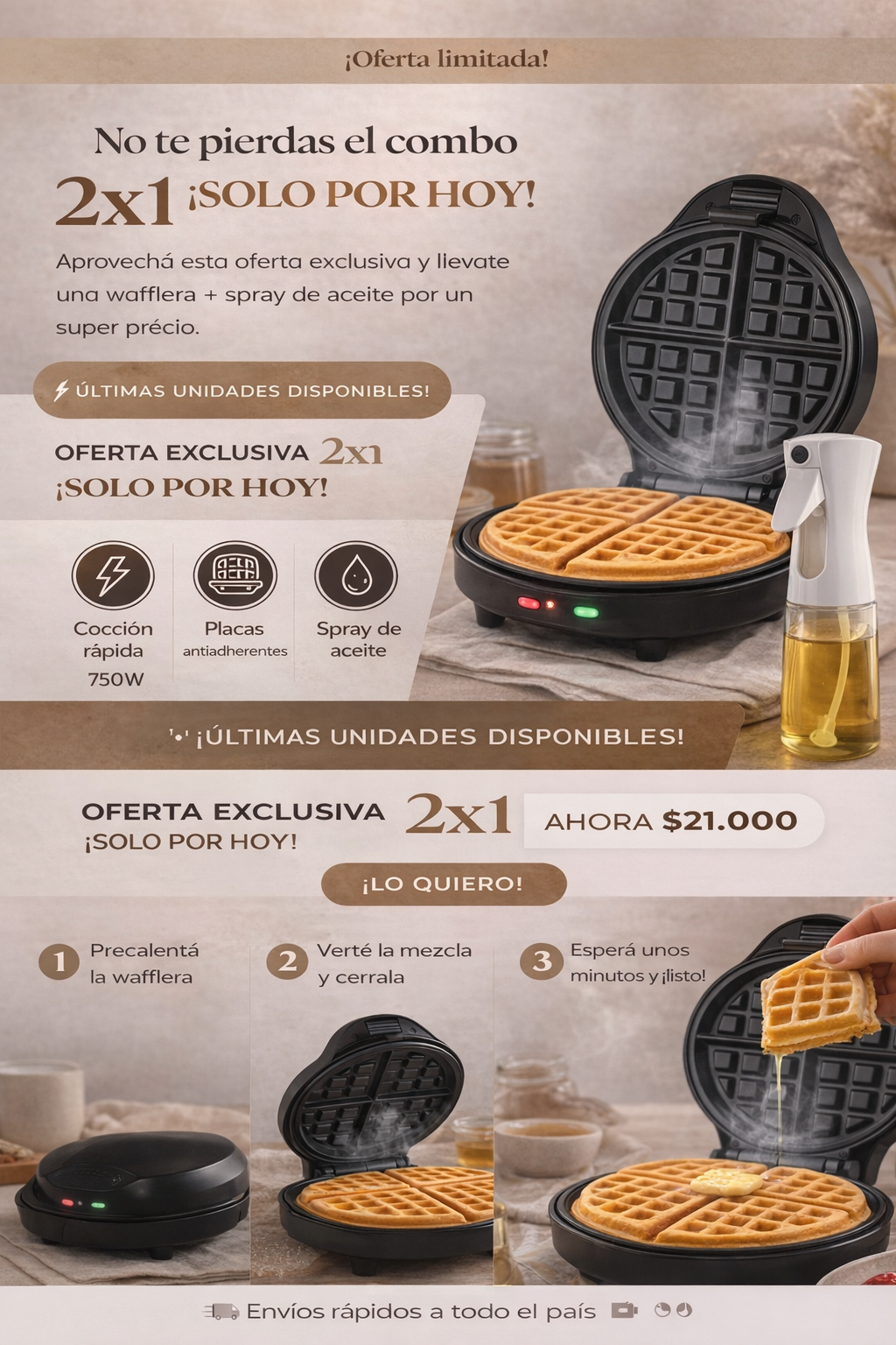 2X1 EN WAFLERA + DISPENSADOR DE ACEITE